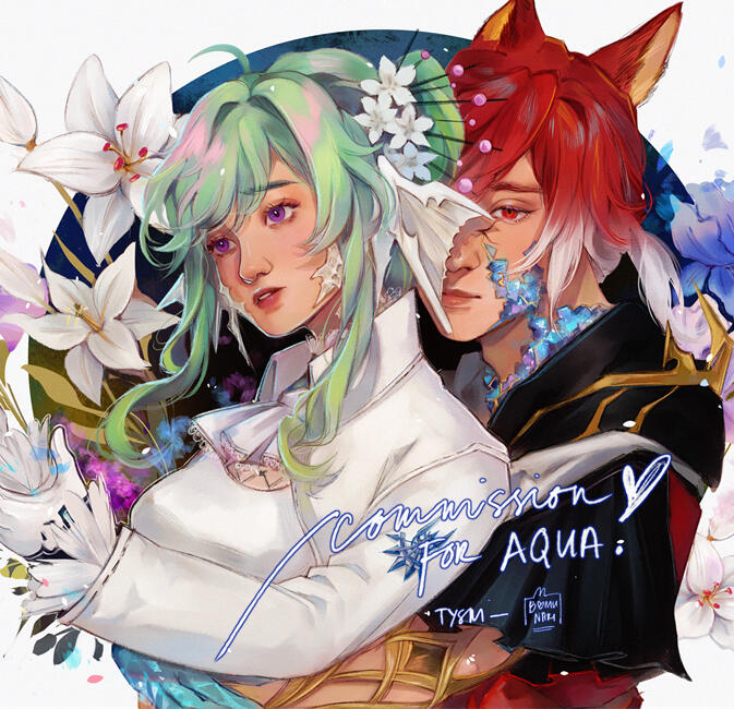 [$150 . single boquet] [$250 couple boquet]Fully rendered illustrations fashioned like a boquet. commissioners can request 2 - 3 main flowers for their portraits.[+$95 . additional character groups of 3+ only]